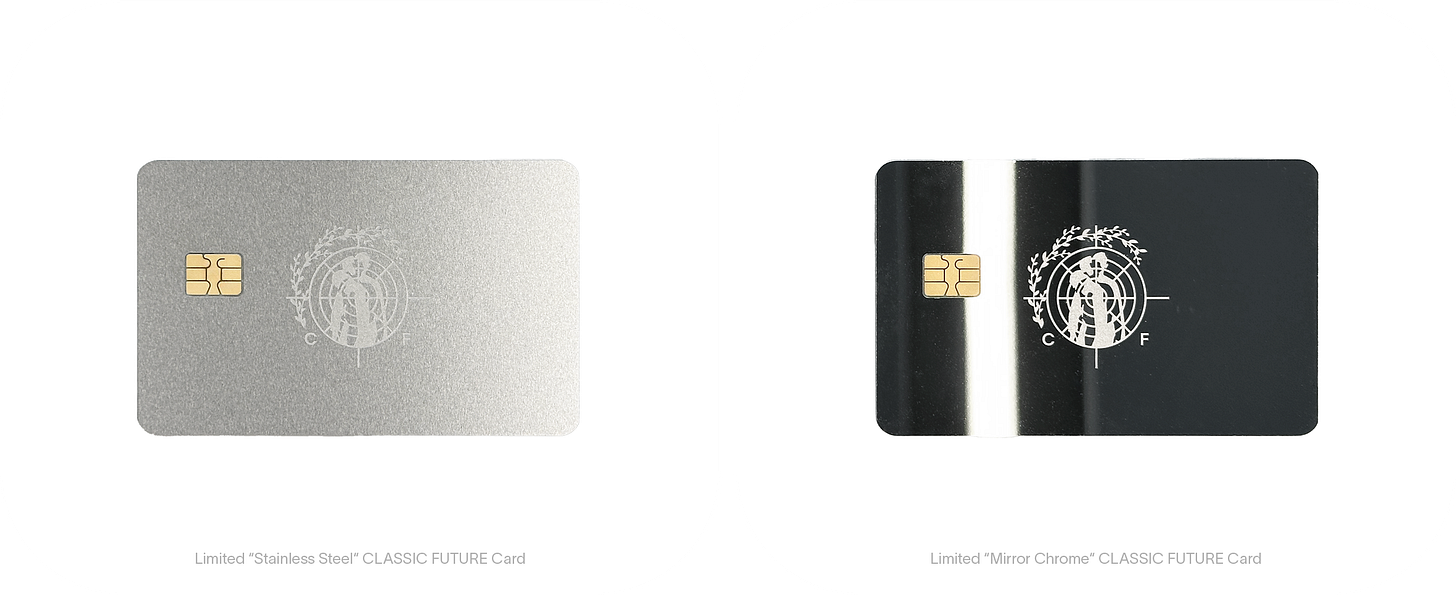 Annual subscribers get a limited edition CLASSIC FUTURE steel card, mailed to them.